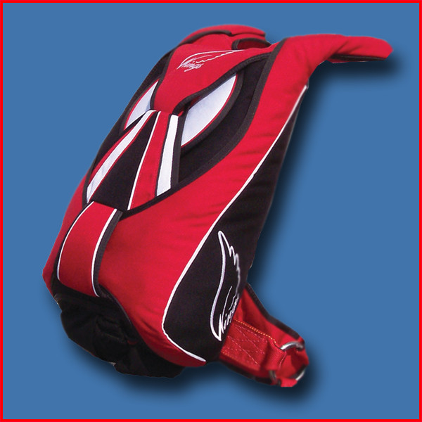 Overall Comfort – Not until now has there been a harness that is as comfortable on the ground, in the aircraft and especially under canopy. Wings harness configuration is designed so that when standing erect there is no unnecessary tension placed on the hips, chest or legs. When sitting in the aircraft the harness flexes so that it forms to your position instead of restricting you. Most importantly , the nature of all harnesses put a lot of pressure on the thighs while under canopy (especially in the groin area). Sunrise Manufacturing has designed a harness that brings your legs slightly forward. This places most of the load on the back of the thigh, allowing you to feel as if you are sitting in a harness, rather than hanging from straps between your legs. The harness and lateral combine to give the most comfort .